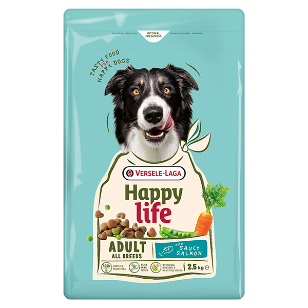 Happy Life Adult All Breeds with Salmon – повнораціонний сухий корм преміумкласу з лососем для дорослих собак усіх порід, розроблений для щоденного харчування та підтримання оптимальної фізичної форми.