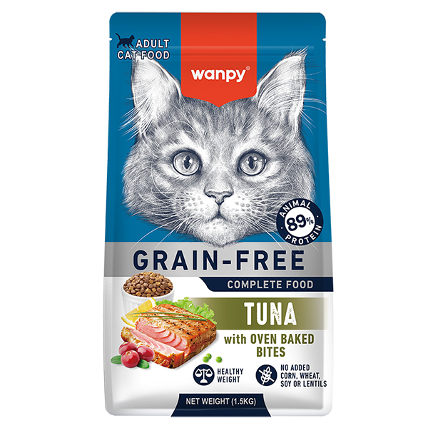 Wanpy Grain Free з тунцем – це сучасний повнораціонний корм для дорослих котів, розроблений з акцентом на високий вміст риби та чудову засвоюваність. Формула враховує природні потреби котів як облігатних хижаків і забезпечує їх усіма потрібними поживними речовинами для підтримання здоров’я та активності.
